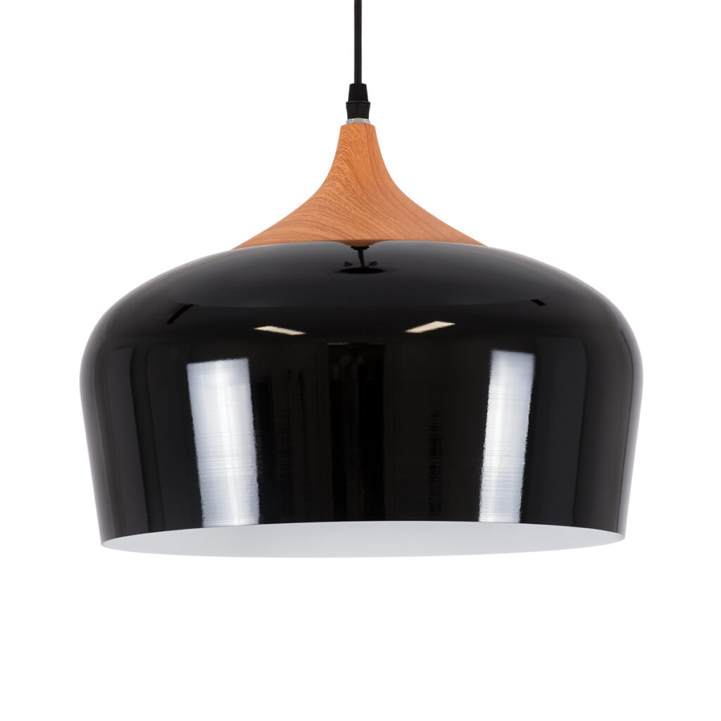 GloboStar® VILI 01261 Μοντέρνο Κρεμαστό Φωτιστικό Καμπάνα Μονόφωτο 1 x E27 IP20 Μαύρο & Μπεζ Μέταλλο – Μ35 x Π35 x Υ27cm