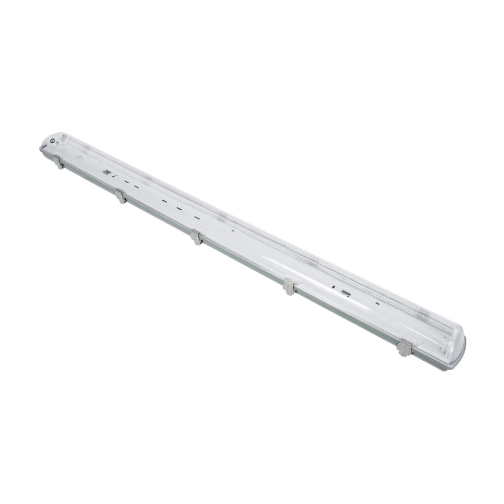GLOBOSTAR® VIGAS 90613 Γραμμικό Βιομηχανικό Φωτιστικό Σκαφάκι Tri-Proof με Μεταλλικά Clips για 2 x Λάμπες T8 G13 120cm Τύπου Φθορίου LED Τροφοδοσίας Ενός Άκρου 120° AC 220-240V Αδιάβροχο IP65 – Γκρι με Διάφανο Κάλυμμα Πλαστικό PC – Μ126 x Π11.5 x Υ9cm