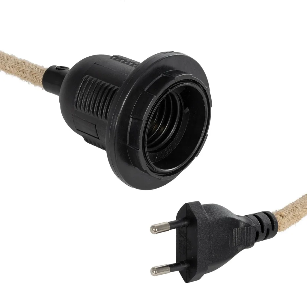 GLOBOSTAR® WHIP 77660 Μοντέρνο DIY Φωτιστικό με Υφασμάτινο Καλώδιο, Ντουί 1 x E27, Διακόπτη On/Off & Πρίζα AC 220-240V IP20 – Μπεζ & Μαύρο – Μ140 x Π5.8 x Υ5.8cm