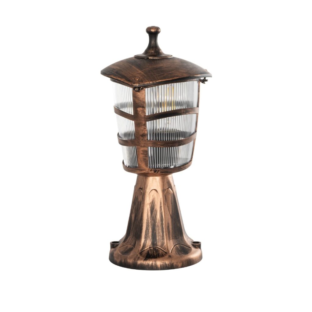 GloboStar® ZARDIN 203-0225 Vintage Επιδαπέδιο Φωτιστικό Φαναράκι Μονόφωτο 1 x E27 IP44 Χάλκινο Πλαστικό Σώμα – Μ17 x Π17 x Υ33cm