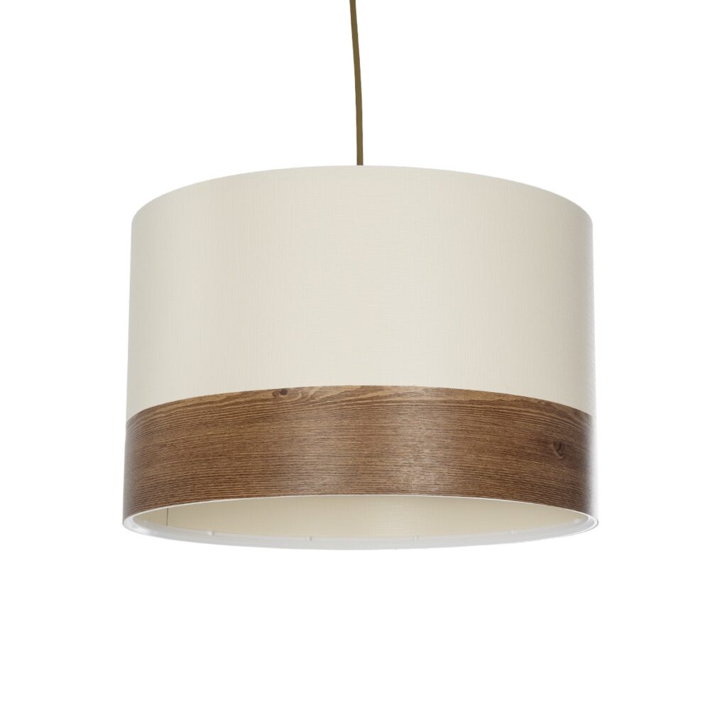 GloboStar® ZYKLUS 203-0103 Μοντέρνο Κρεμαστό Φωτιστικό Καπέλο Μονόφωτο 1 x E27 IP20 Λευκό Ύφασμα με Καρυδί Ξύλο – Μ36 x Π36 x Υ25cm