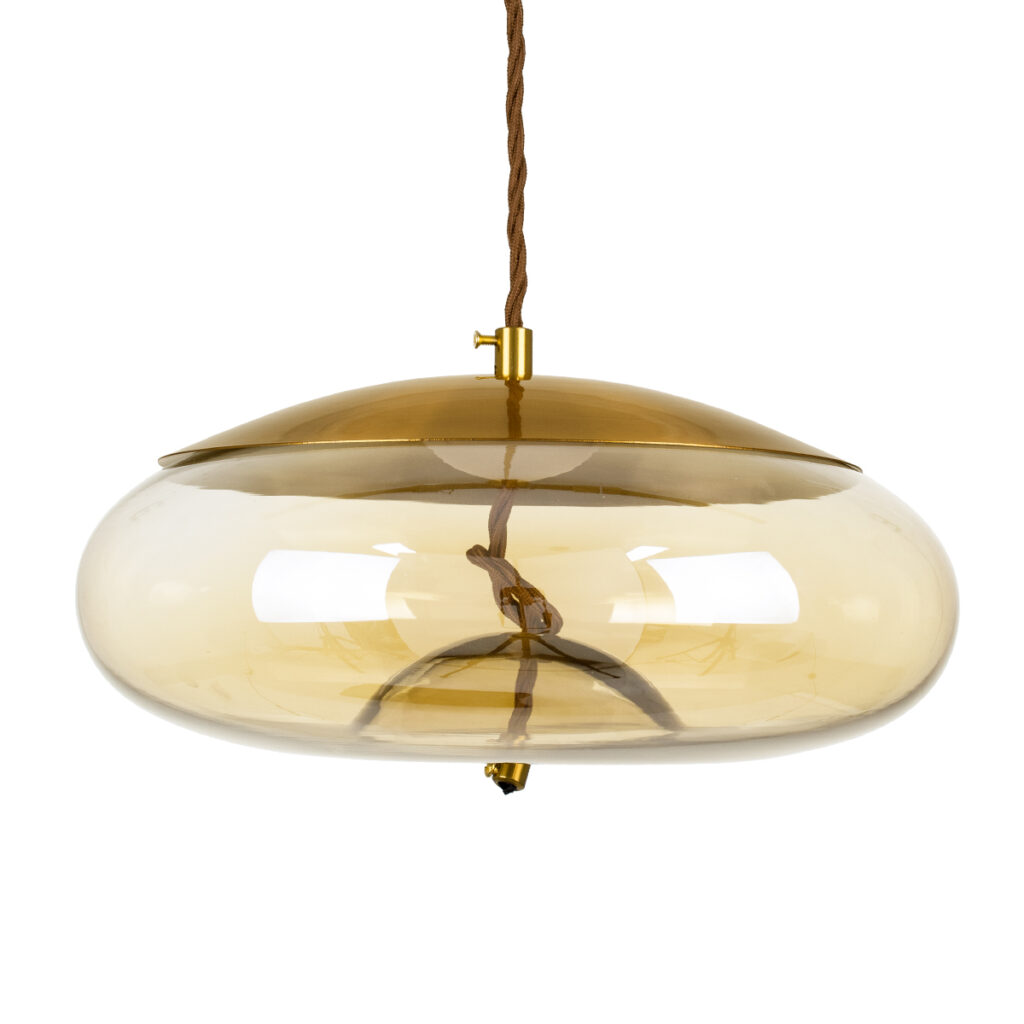 GloboStar® ΑΧΤΟΝ 00750 Μοντέρνο Κρεμαστό Φωτιστικό Ανάρτηση LED 7W 500 lm 180° AC 100-240V IP20 Θερμό Λευκό 2700K Μελί Γυαλί με Χρυσό Μέταλλο – Μ30 x Π30 x Υ15cm – 2 Xρόνια Εγγύηση