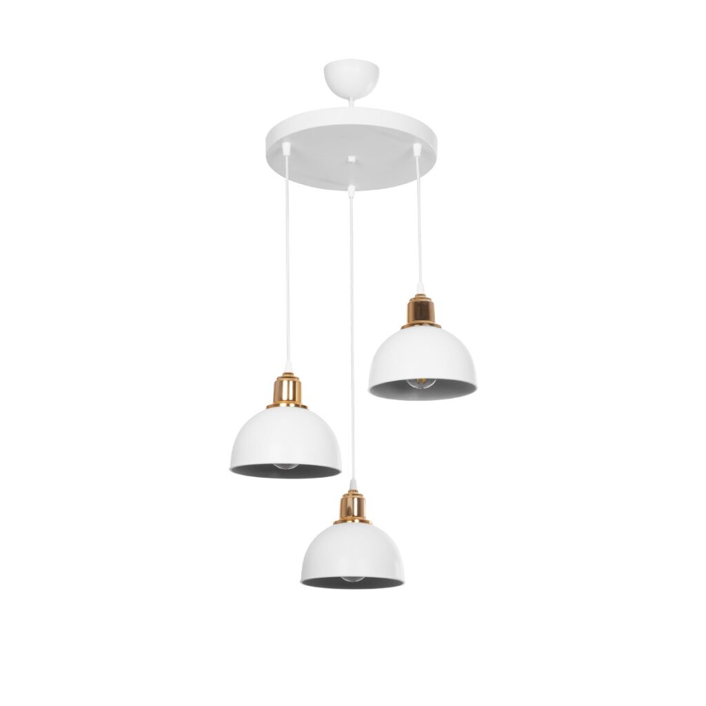 GloboStar® ΗUT 203-0148 Vintage Κρεμαστό Φωτιστικό Καμπάνα Τρίφωτο 3 x E27 IP20 Λευκό με Χρυσό Πλαστικό – Μ40 x Π40 x Υ76cm